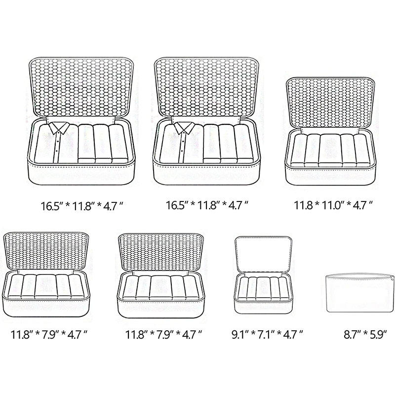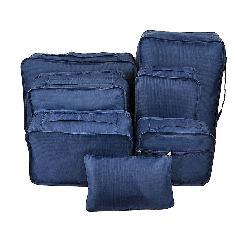 Casa / Productos / Bolsa de viaje / Cubos de embalaje de viaje / 7 piezas de viaje impermeable conjunto de equipaje de viaje maleta ropa organizador cubo cubos de embalaje con bolsas de aseo
