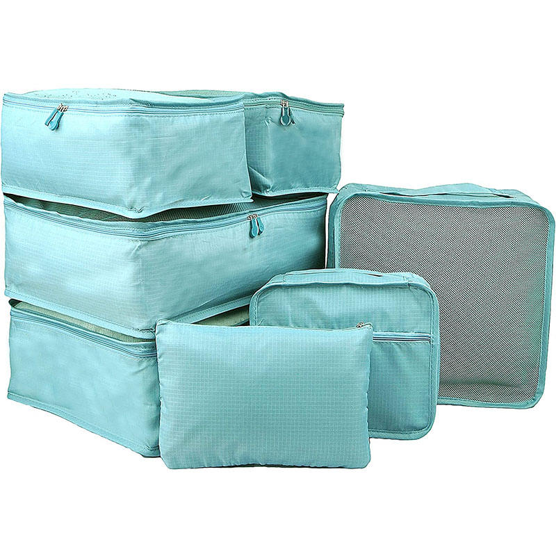 7 piezas de viaje impermeable conjunto de equipaje de viaje maleta ropa organizador cubo cubos de embalaje con bolsas de aseo