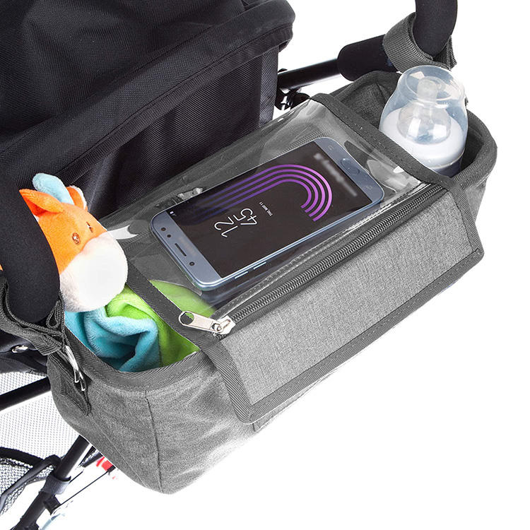Bolsa de almacenamiento multifuncional para pañales de mamá, organizador de cochecito con soporte para biberón y bolsillo transparente para teléfono de PVC | |