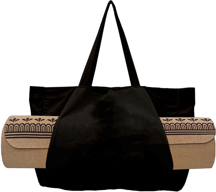 Casa / Productos / Bolsa de la compra / Bolso de mano / Bolsa de esterilla de yoga deportiva de moda para mujer con diseño negro personalizada, bolsa de esterilla de yoga de algodón ecológica reciclada