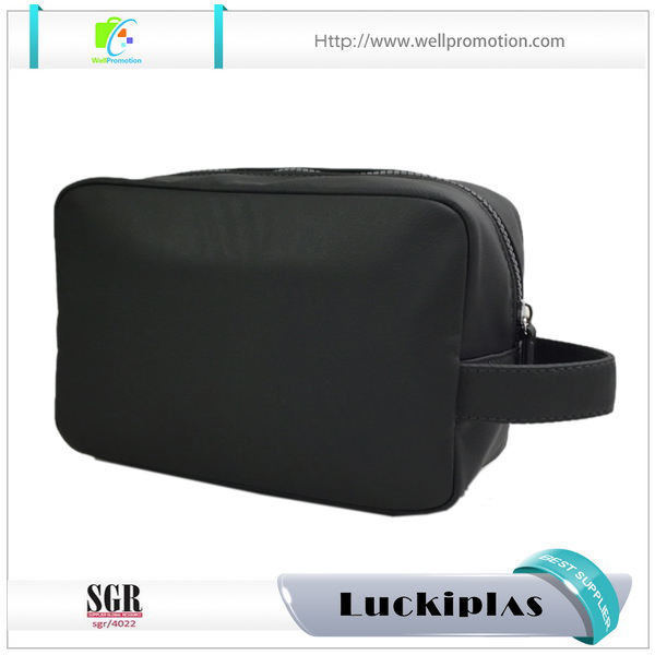 Ba de maquillaje cosmético de viaje para hombre de cuero negro con logotipo personalizado