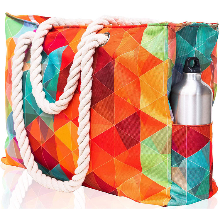 Bolsa de playa impermeable con asas de cuerda de algodón para el verano