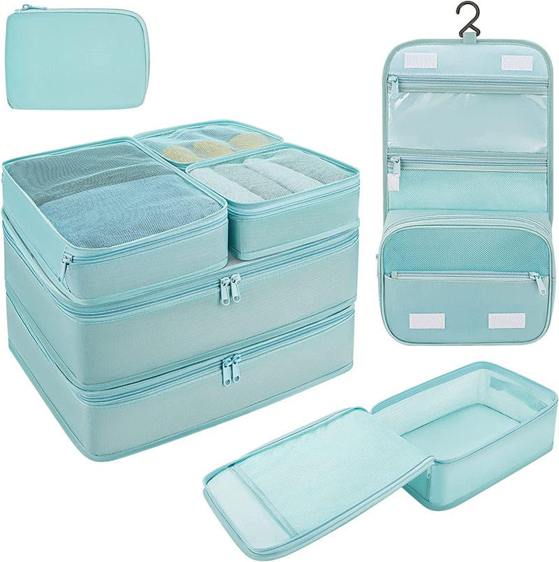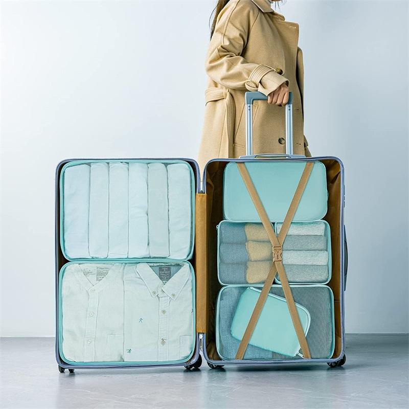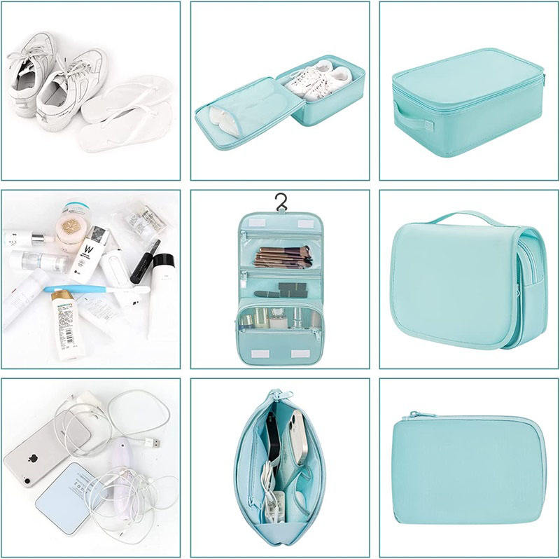 | Nombre | Bolsa organizadora de viaje plegable esencial de viaje ligera, juego de cubos de embalaje para viajes con bolsa de artículos de tocador grande para ropa | ||||||