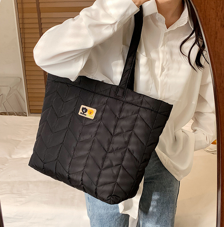 Casa / Productos / Bolsa de la compra / Bolso de mano / Bolso acolchado de invierno para mujer, portátil, para llevar en el hombro, de lujo, grandes, hinchados, ligeros, acolchados, con relleno