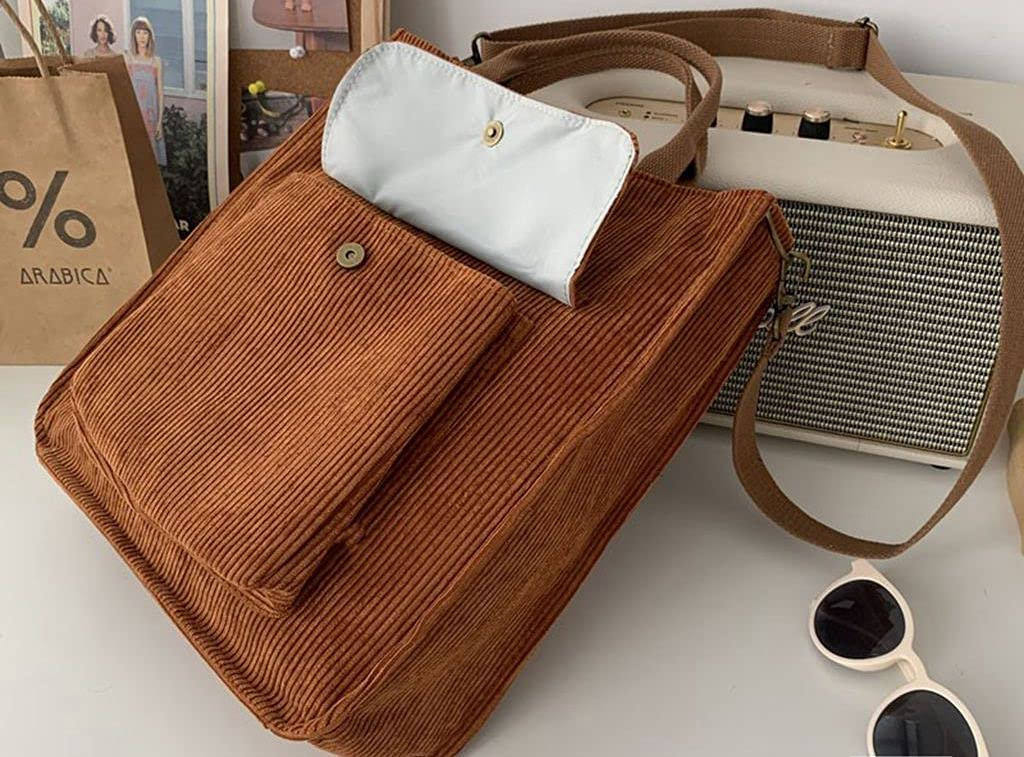 | Bolso de hombro de pana personalizado para mujer, bandolera informal, bolso de mensajero de pana, bolso de mano, bolso de viaje | ||