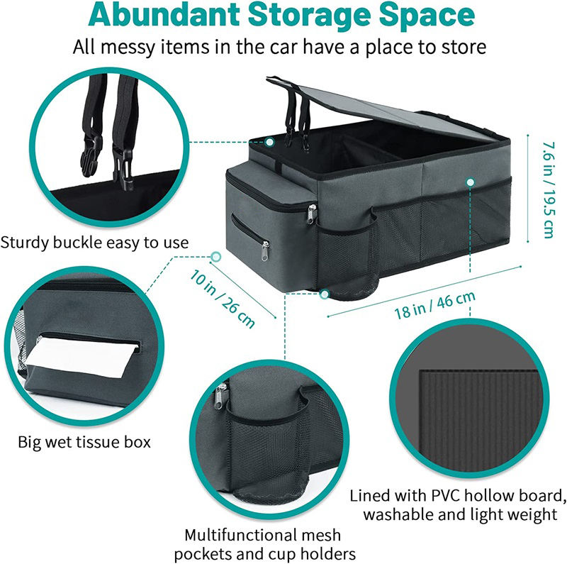 Nombre del producto | Caja de almacenamiento de carga plegable duradera organizador de maletero plegable y almacenamiento para coche con portavasos y tapa resistente al desgaste | ||||||