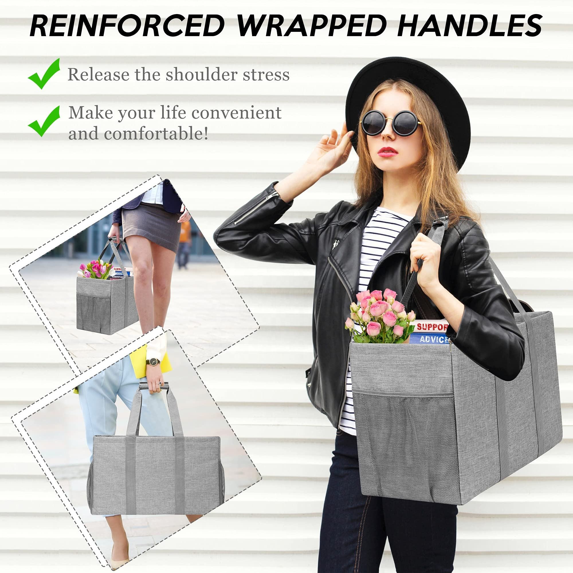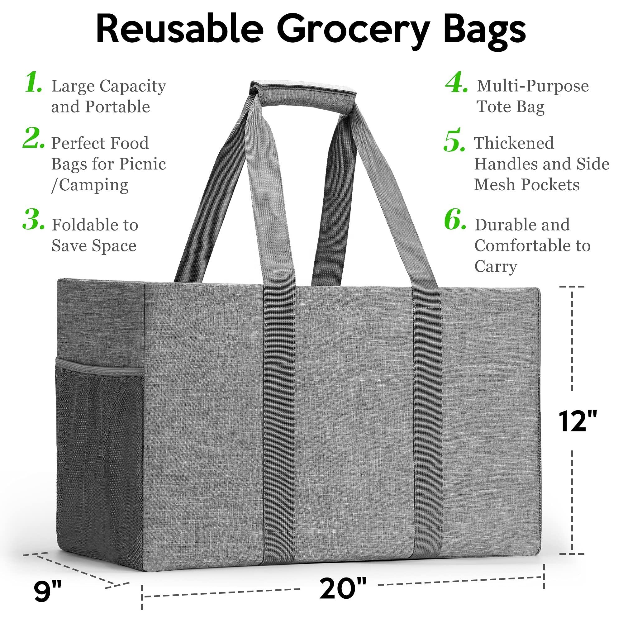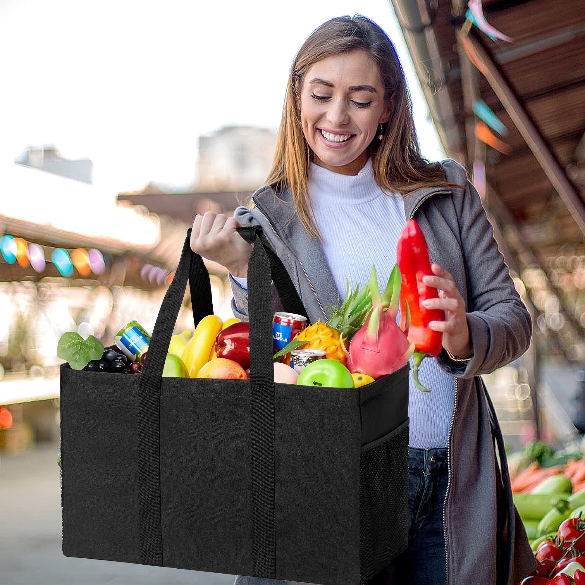 Bolsa de almacenamiento de compras resistente ISO, bolsas de carrito de compras reutilizables de gran capacidad y organizador de comestibles para mujeres