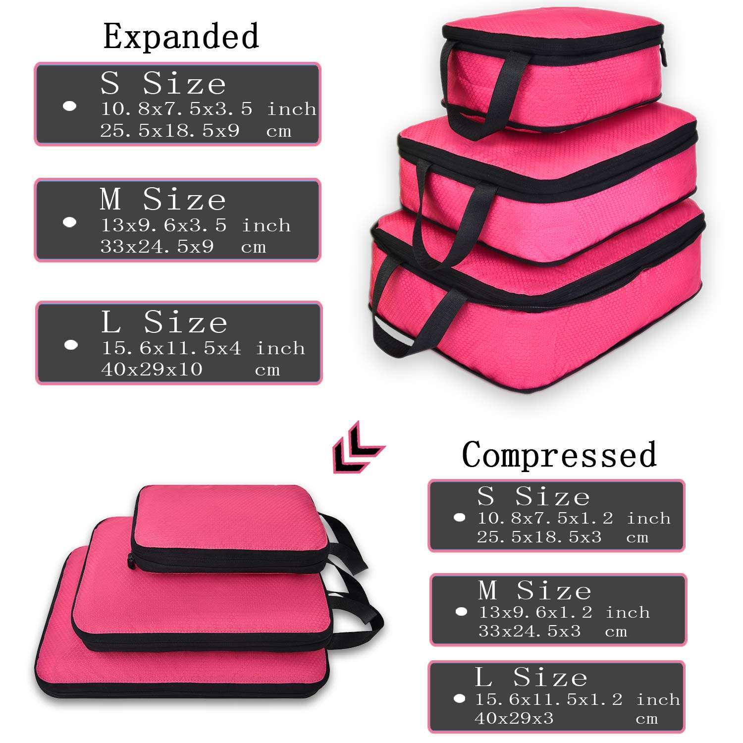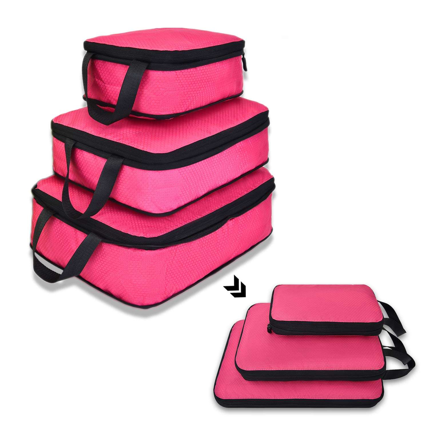 Juego de 3 cubos de embalaje de viaje de compresión para llevar bolsa de almacenamiento expandible