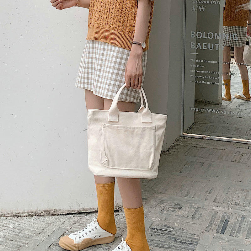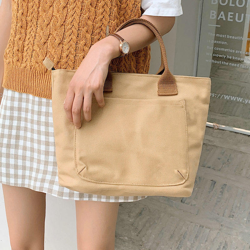Casa / Productos / Bolsa de la compra / Bolso de mano / Lindo mini bolso de mano de lona para mujer Moda duradera Chica Adolescentes Bolso de muñeca con bolsillo delantero