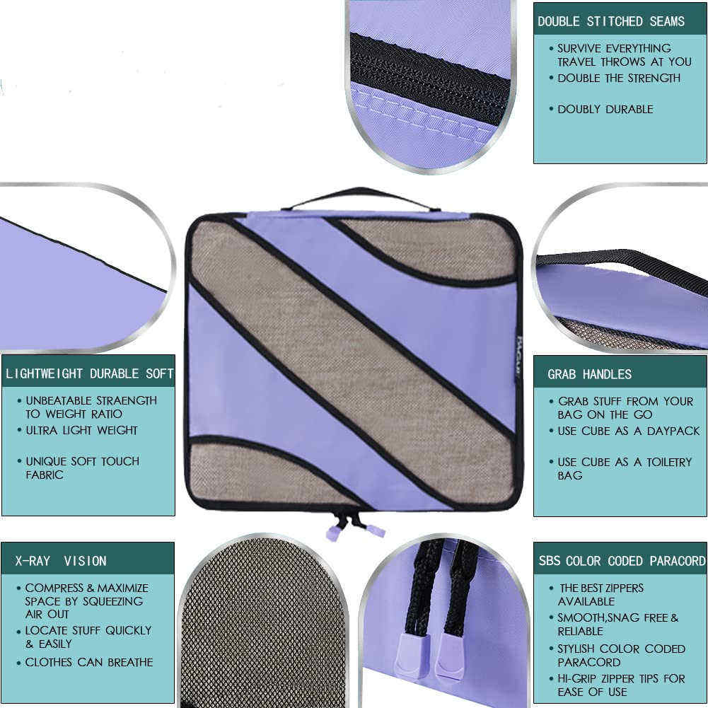 Juego de organizador de bolsas de viaje duradero de 5 piezas Cubos de embalaje de compresión