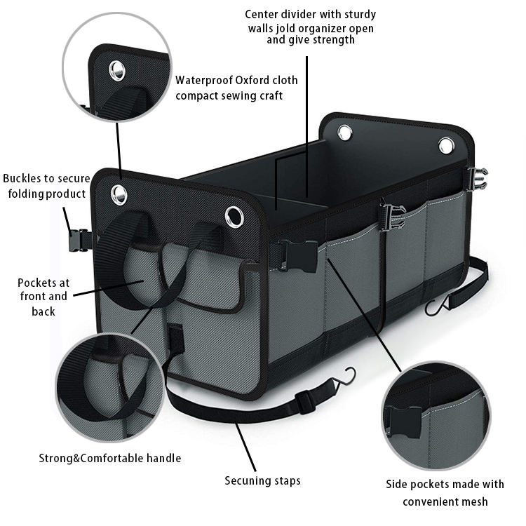 | Nombre | Organizador de coche Tote, organizador de asiento trasero delantero, organizador de coche entre asientos, organizador de maletero de coche, organizador plegable | ||||||