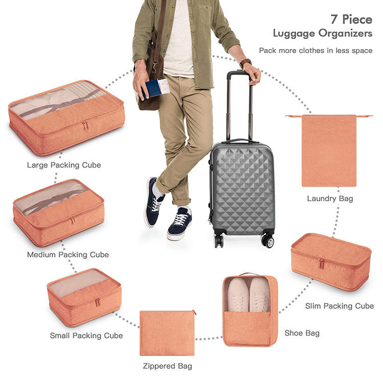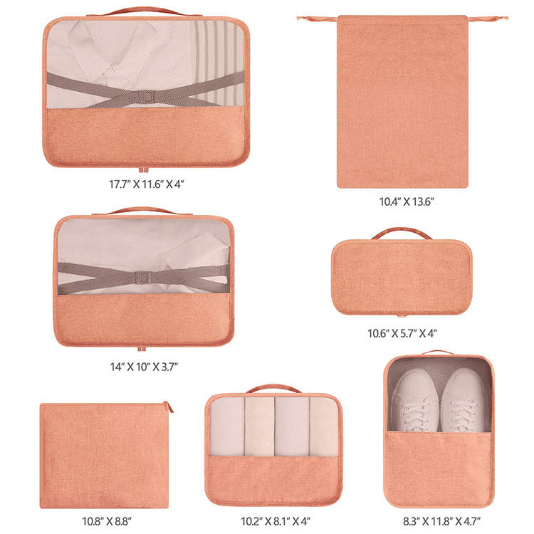 | Venta al por mayor de poliéster 7 en 1 bolsa organizadora de viaje conjunto de cubos de embalaje lavables ligeros con bolsa de zapatos bolsa de cosméticos | ||